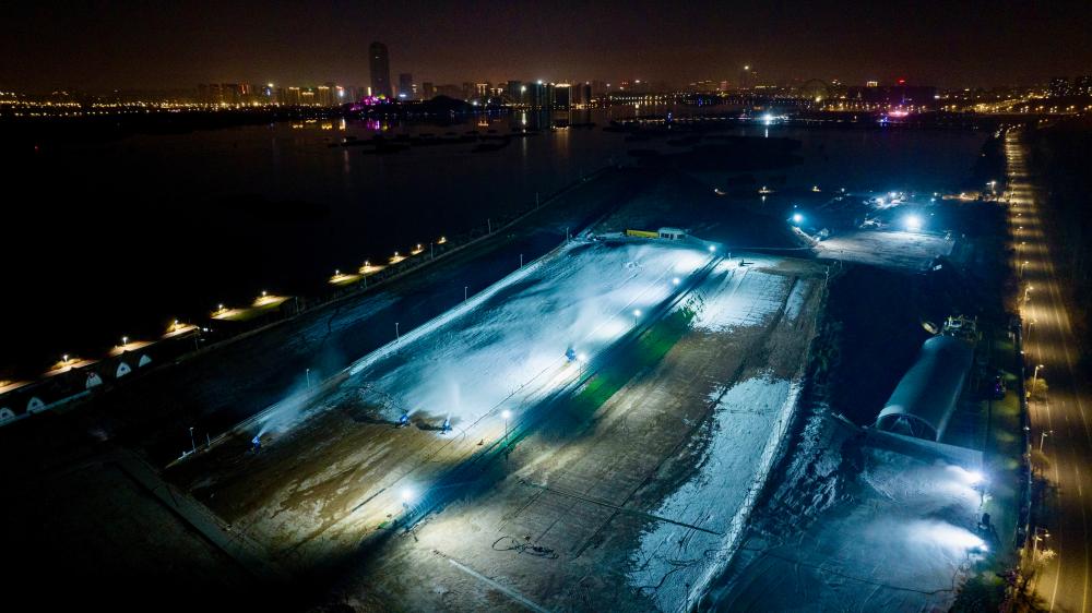 銀川:迎接冰雪季 夜間造雪忙